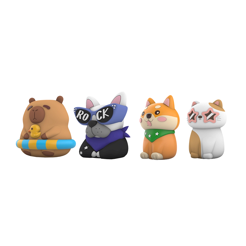 Apontador emborrachado Focinhos, disponível nos formatos de cachorro, gato e capivara.