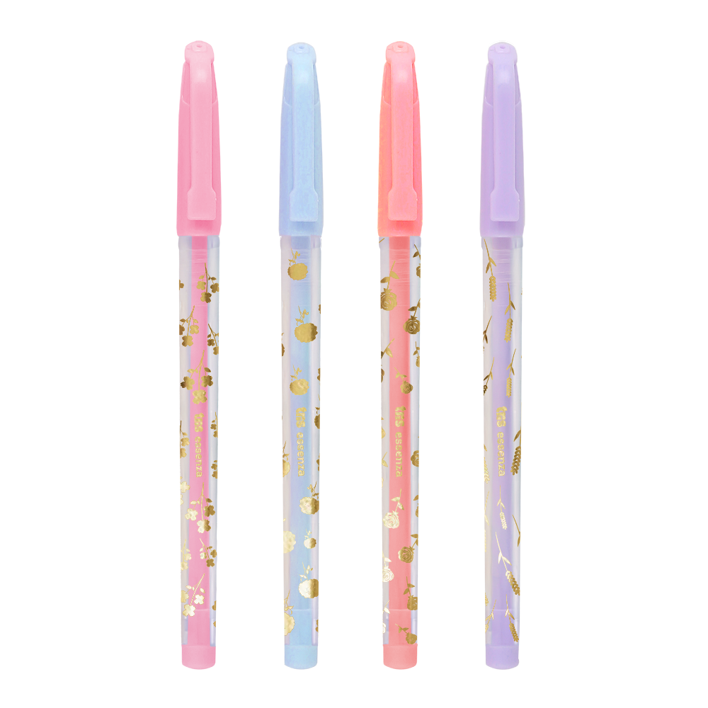 A caneta esferográfica Essenza tem estampas florais douradas super delicatas! Sua ponta é fina, 0.7mm, e possui tinta colorida, com cheirinho inspirado em flores!